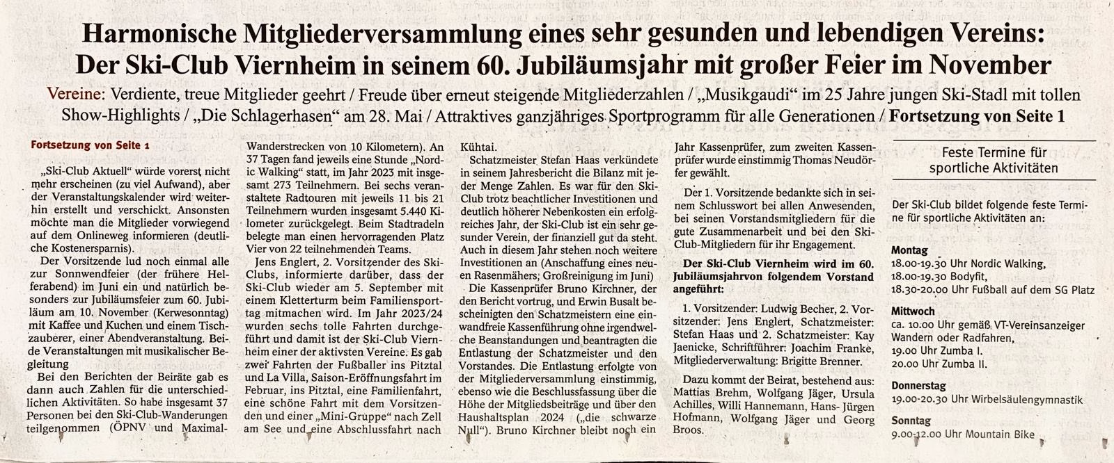 Der Ski-Club Viernheim wird im 60. Jubiläumsjahr von folgendem Vorstand angeführt: