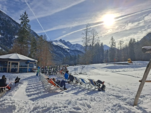 Gleich im Anschluss gab es die traditionelle Schneewanderung zu Bernhard‘s Gemstelhütte wo eine leckere Brotzeitplatte als Zwischenmahlzeit den Skisportlern mundete. Bei Bier, Wein, Jagatee, Glühwein, Bombardinos und leckeren Prinz Schnäpsen leiteten „hochgeistige“ Gespräche über zum nächsten Programmpunkt, dem Saunabesuch in der tollen Wellnessanlage des Hotels.
