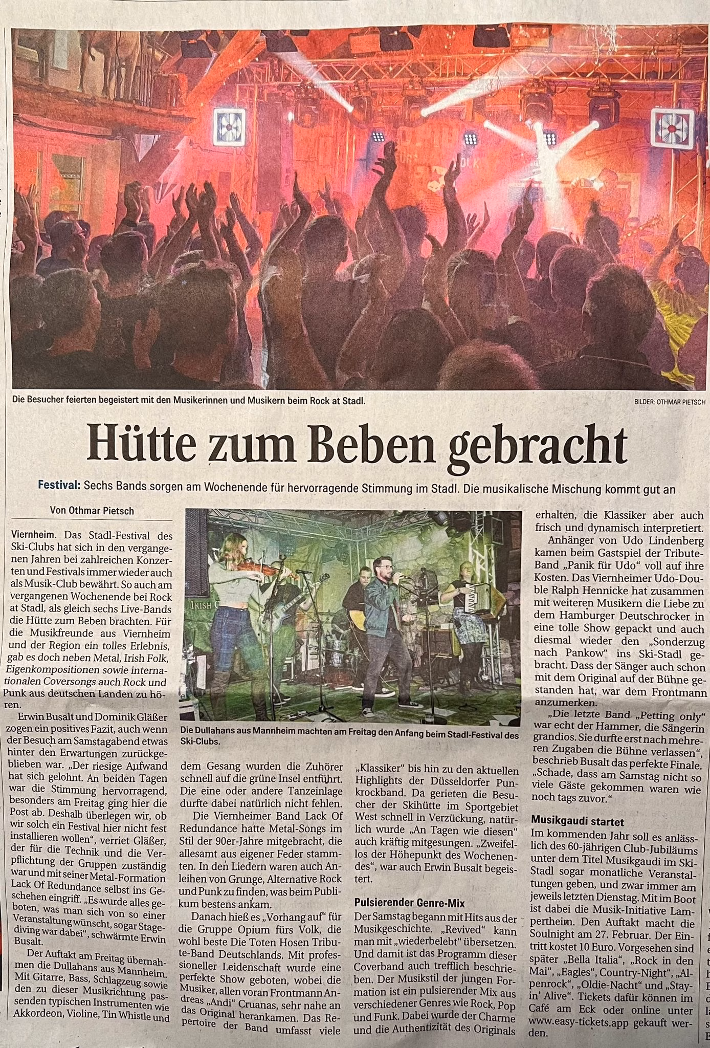 Sechs Bands sorgen am Wochenende für hervorragende Stimmung im Stadl. Die musikalische Mischung kommt gut an.