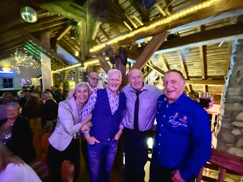 Mit Walter „Kippe“ Helbig an den Drums, mit Kai Häfner (Sax) und Chris Linder (Bass), beide begnadete Sänger (Keyboard), und nicht zuletzt mit Harry Schreck am Keyboard, der schon mit „Six was Nine“ 1994 den Welthit „Drop dead beautiful“ performte, und mit seiner Band auf Welttour unterwegs war, und sogar schon von keinem geringeren als Paul McCartney engagiert wurde. Es standen nur Top-Profis auf der Stadl-Bühne, die mit sehr viel Spielfreude und mit großem Spaß den ganzen Abend über für eine Super-Stimmung bei den Silvestergästen sorgten.