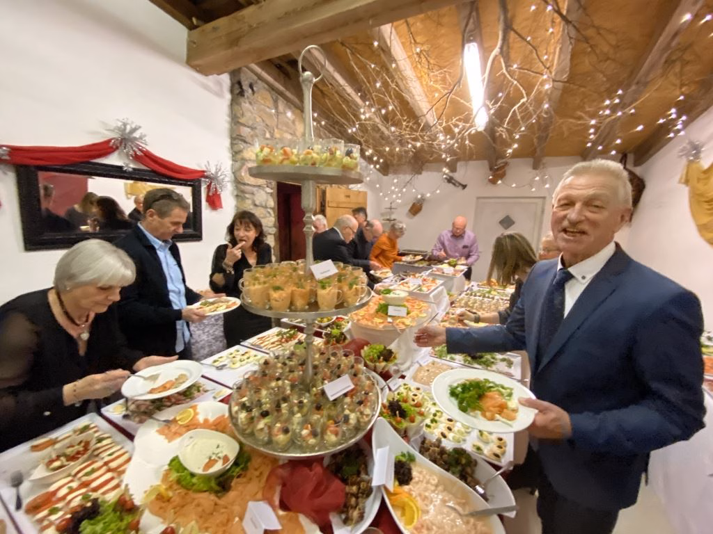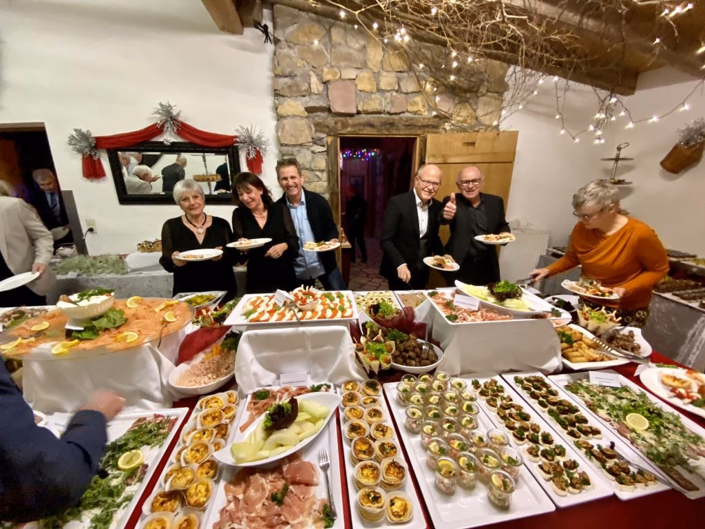 Nach der kurzweiligen Begrüßung durch Rolf Pilz, mit den Anekdoten der Ski-Club-Kicker bei ihren Skifahrten ins Stubaital, ins Kleine Walsertal, und kürzlich erst ins Pitztal ins Top-Hotel „Wildspitze“, war es ihm vorbehalten das Buffett für eröffnet zu erklären.