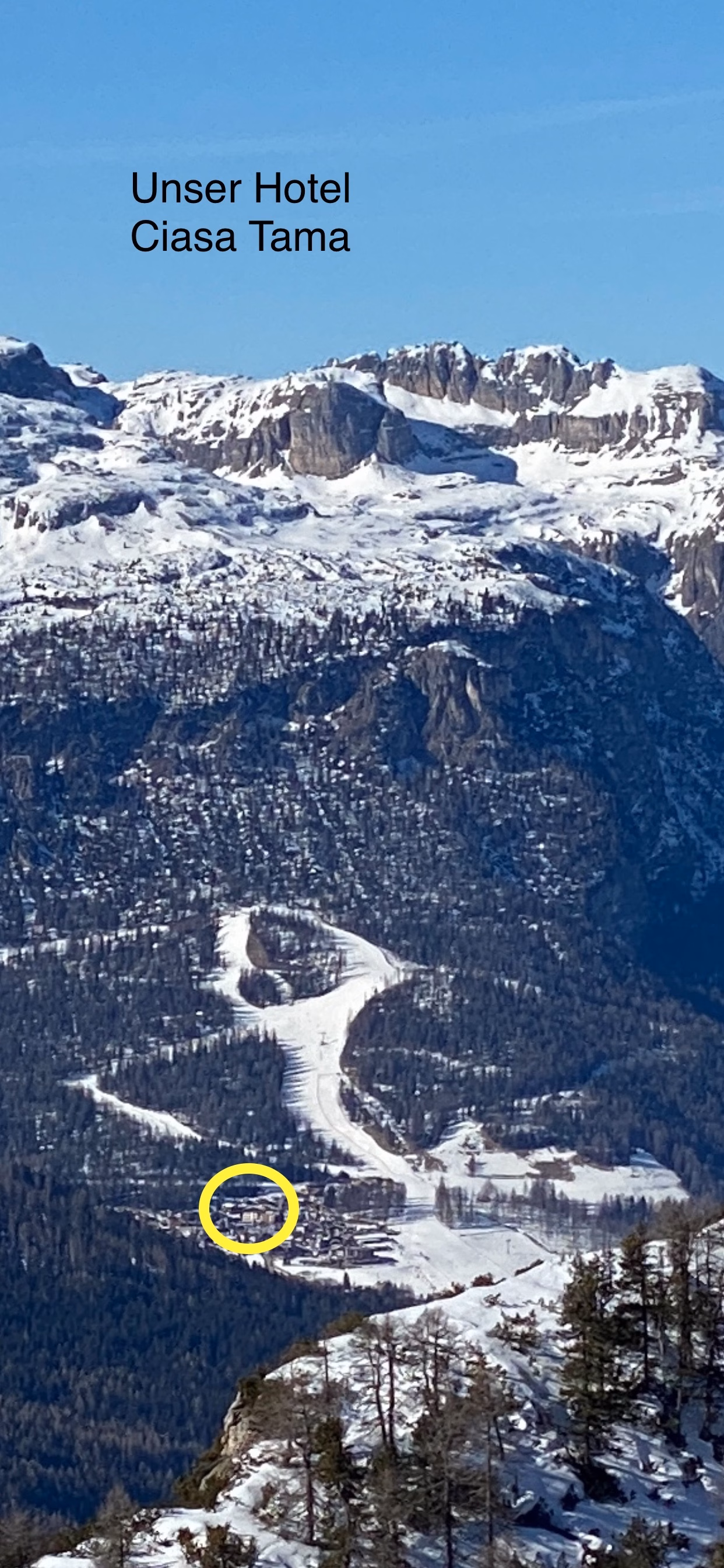 Hervorragend präparierte Pisten, tolle Hütten und ein sehr schönes Hotel mit sehr gutem Essen erwarten uns Skifahrer, direkt an der Piste im Ciasa Tama!